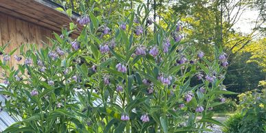 Comfrey is the workhorse of the garden. This perennial is a powerful soil builder and fertilizer, beloved by pollinators, blooms all summer long, and generally behaves itself and stays put. This is a Bocking 14 cultivar that has sterile seeds. Cut down several times during the summer and use the cuttings to mulch and fertilize beds. I plant it around all my fruit trees and other permanent plantings to provide a continuous and balanced supply of nitrogen, potassium and phosphorous. I also use it to make a nutritious compost tea and steep dried leaves in organic olive oil for a comfrey oil that I use daily on my face and mix with beeswax and scent with lavender for an amazing salve. $18 for healthy, field-grown divisions in spring and fall.